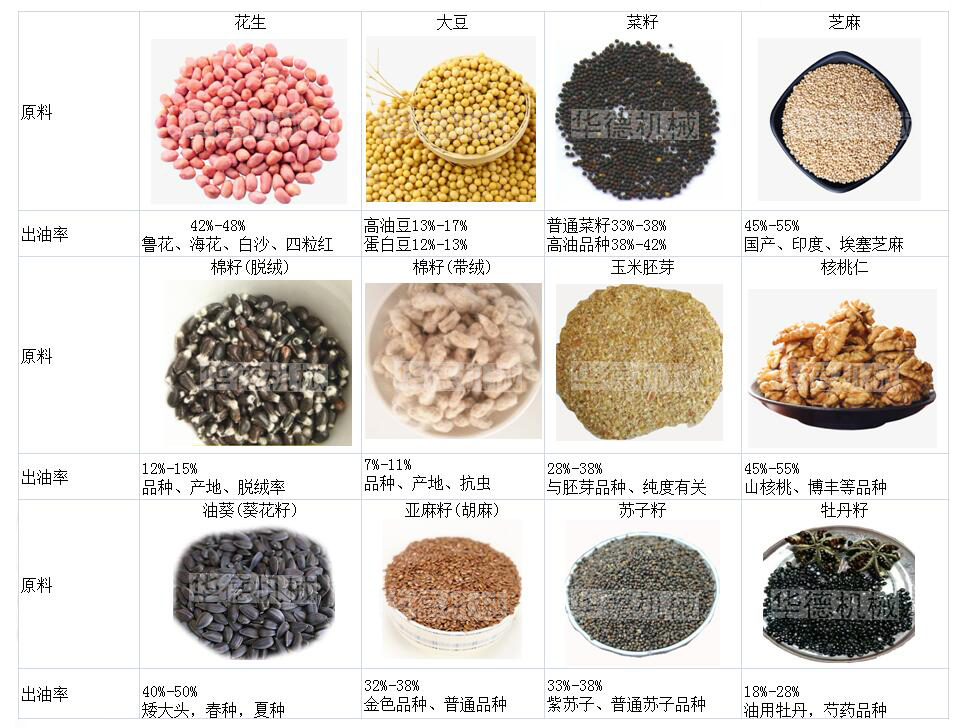 華德榨油機對各種油料的壓榨方法