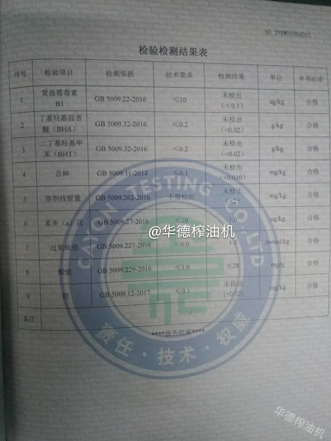 設(shè)備材質(zhì)通過CMA中國計量認(rèn)證 HD系列榨油機(jī)通過歐盟CE認(rèn)證