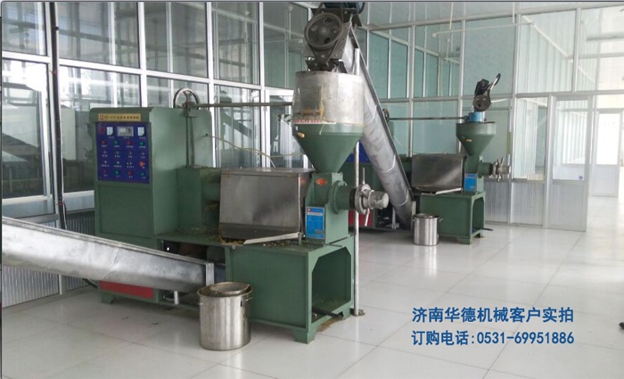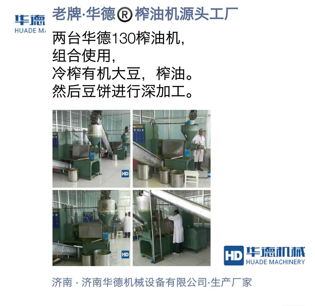 1.兩臺(tái)華德130型榨油機(jī)組合使用,冷榨油機(jī)大豆,榨油。